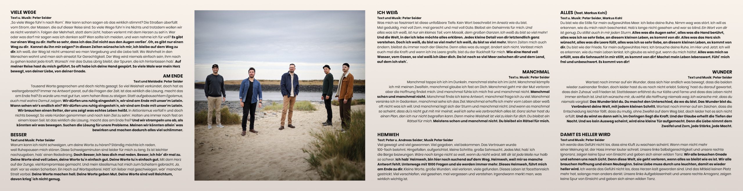 Lyrische, tiefe Texte reflektieren über den Glauben an einen guten Gott, das Leben und dem Unterwegssein. Eine Ermutigung an alle Hörer, offene Fragen zu zulassen und zu vertrauen, dass am Ende alles gut wird.